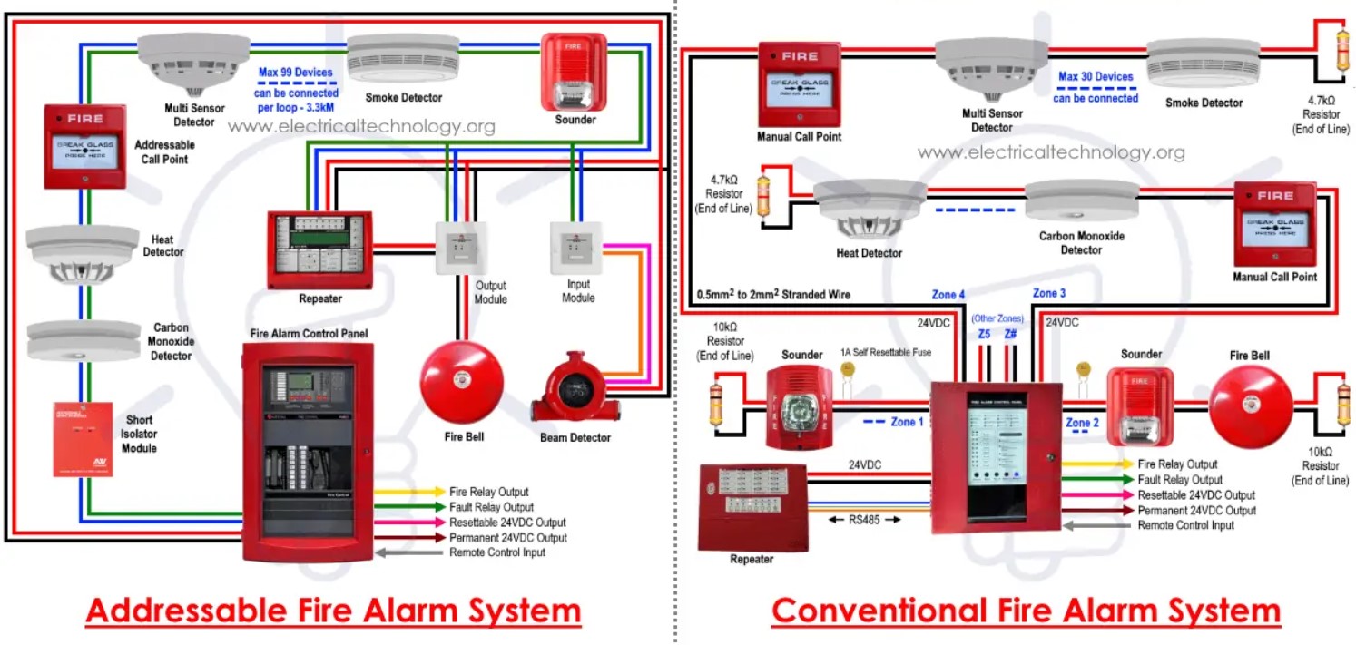 An addressable fire detection and alarm system is a type of fire safety system that can pinpoint the location of a fire within a building. The system is comprised of a network of sensors and control panels that communicate with each other to detect and report a fire emergency.